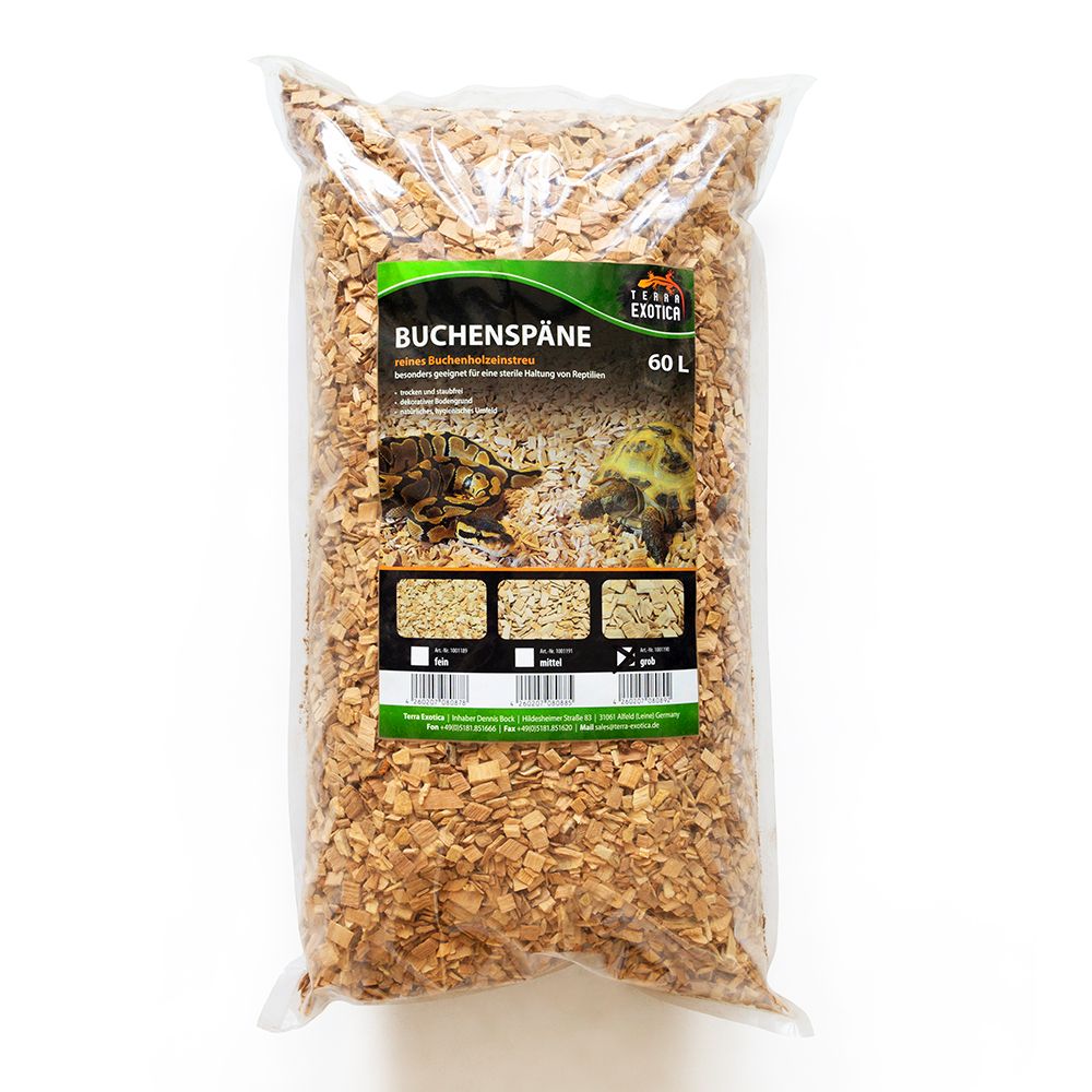 Durch die trockene, staubfreie Beschaffenheit eignet sich das Substrat besonders für Reptilienarten, die keinen feuchten Bodengrund benötigen, und unterstützt eine sterile und saubere Haltung. Das naturbelassene Buchenrundholz sorgt für ein natürliches, wohlriechendes und optisch ansprechendes Terrarienumfeld.