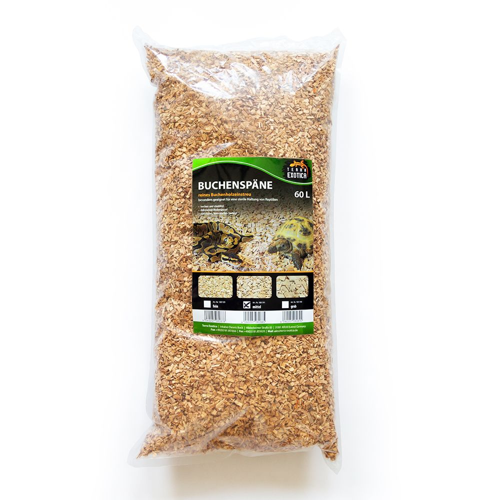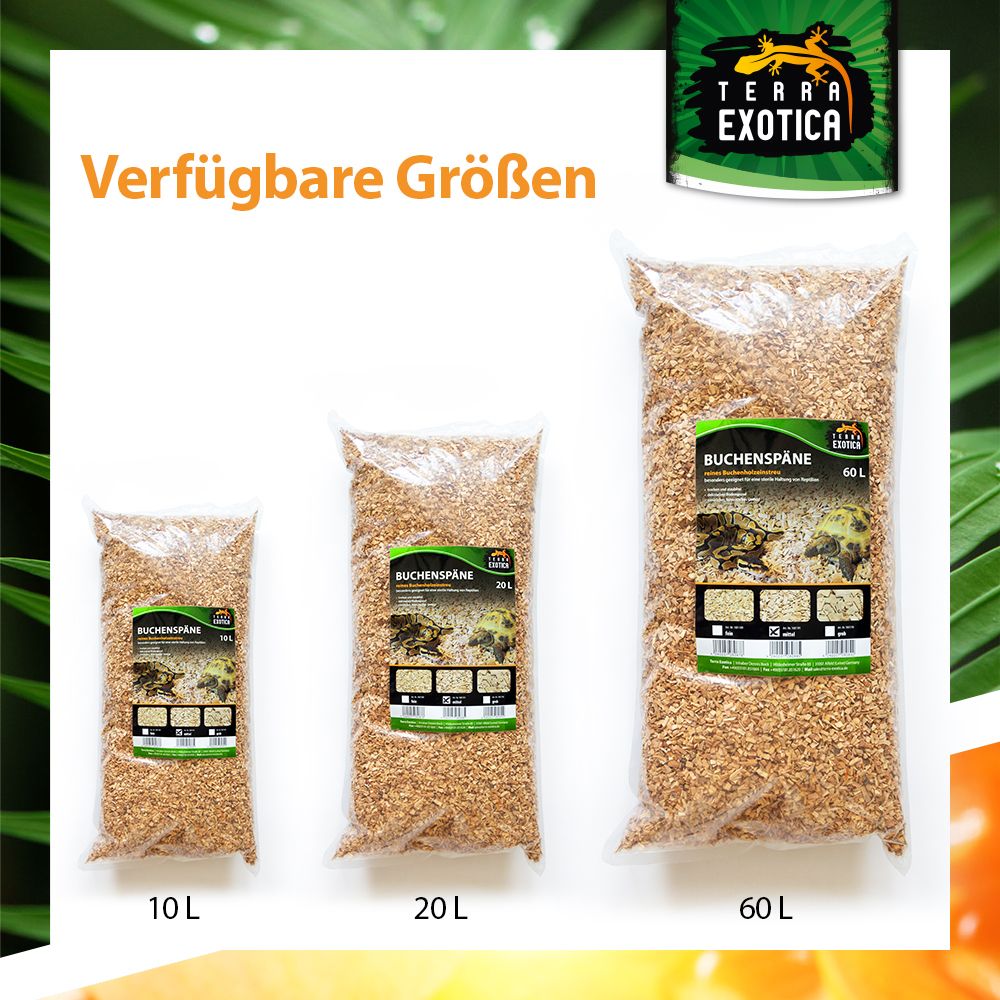 Durch die trockene, staubfreie Beschaffenheit eignet sich das Substrat besonders für Reptilienarten, die keinen feuchten Bodengrund benötigen, und unterstützt eine sterile und saubere Haltung. Das naturbelassene Buchenrundholz sorgt für ein natürliches, wohlriechendes und optisch ansprechendes Terrarienumfeld.