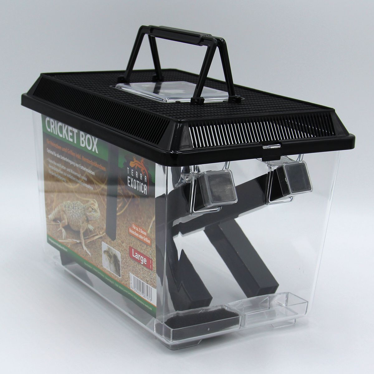 Die Cricket Box Large (30 × 19,5 × 20,5 cm) ist die ideale Lösung für die Hälterung von Futterinsekten wie Heimchen und Grillen. Sie bietet eine sichere, saubere und praktische Möglichkeit, Futtertiere bis zur Verfütterung zu halten und einfach zu entnehmen – perfekt für Reptilien- und Amphibienhalter.
