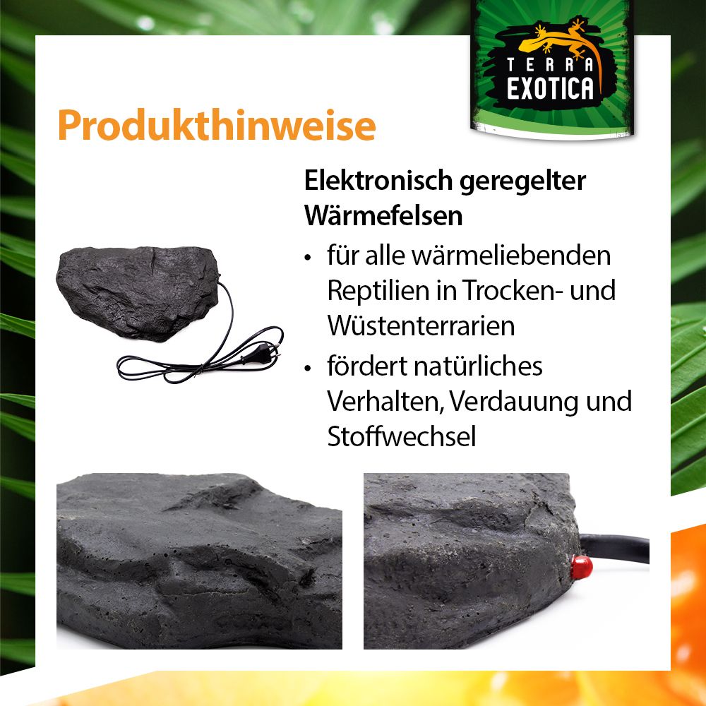 Der Heat Rock – Large ist ein elektronisch geregelter Wärmefelsen, der speziell für wärmeliebende Reptilien in Trocken- und Wüstenterrarien entwickelt wurde. Mit seiner natürlichen Steinoptik fügt er sich harmonisch in jede Terrarienlandschaft ein und sorgt für eine gleichmäßige, sanfte Wärmeabgabe – ideal zur Unterstützung von Verdauung, Stoffwechsel und natürlichem Verhalten.