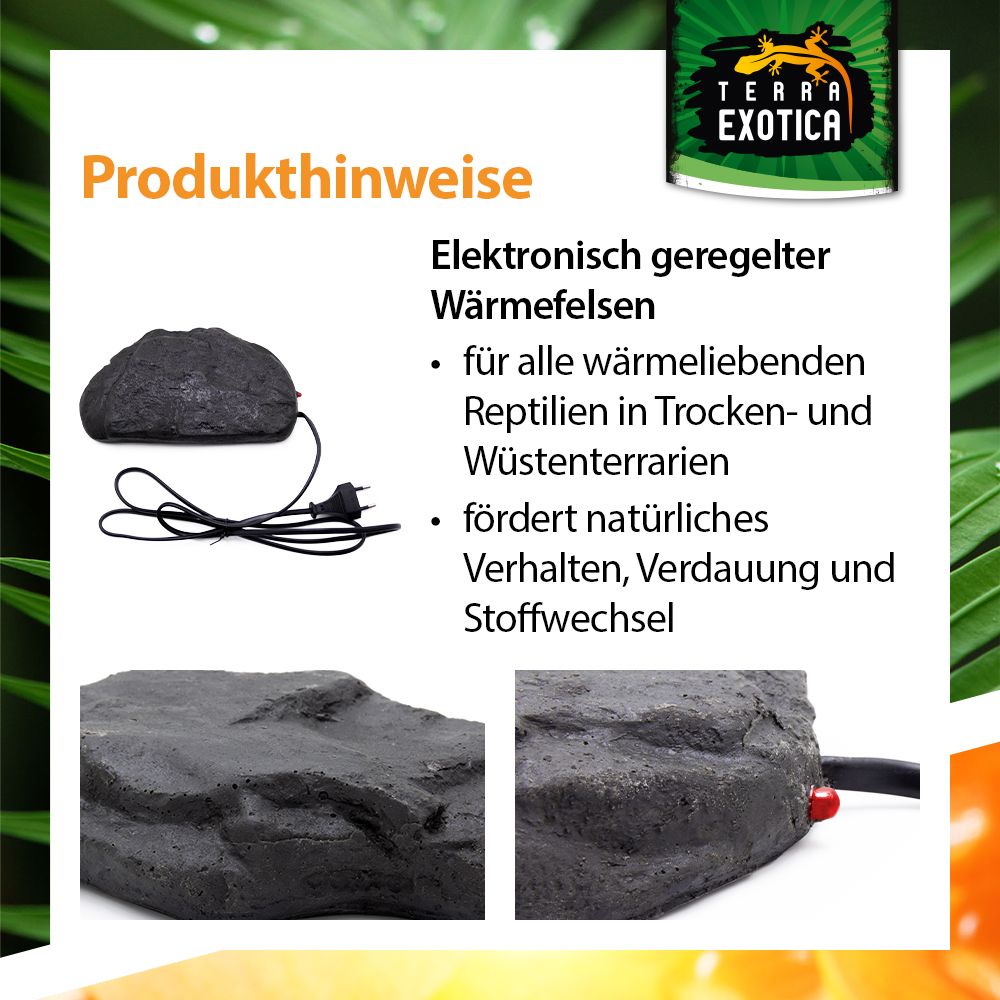 Der Heat Rock – Medium ist ein elektronisch geregelter Wärmefelsen, der speziell für wärmeliebende Reptilien in Trocken- und Wüstenterrarien entwickelt wurde. Mit seiner natürlichen Steinoptik fügt er sich harmonisch in jede Terrarienlandschaft ein und sorgt für eine gleichmäßige, sanfte Wärmeabgabe – ideal zur Unterstützung von Verdauung, Stoffwechsel und natürlichem Verhalten.