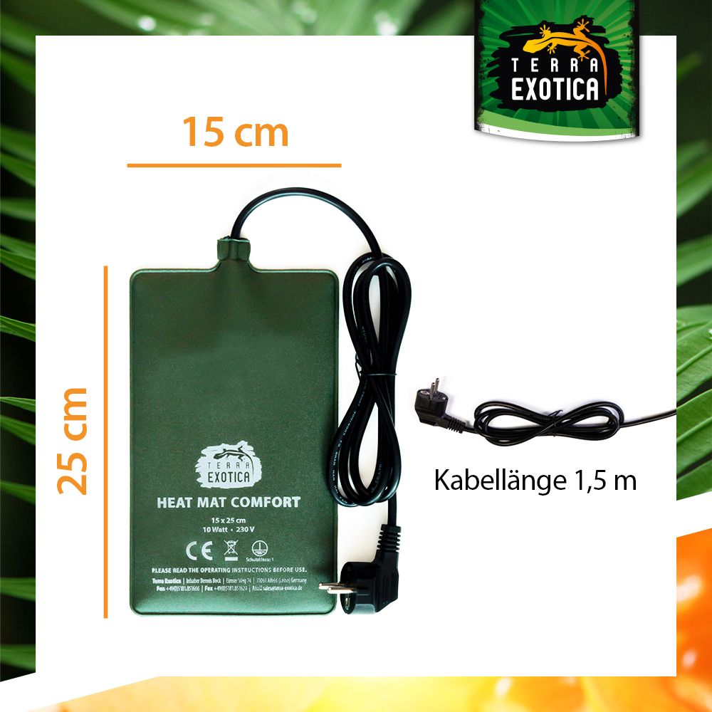 Die Comfort Heizmatte ist eine zuverlässige und energiesparende Grundheizung für Terrarien, die den durch die Sonne aufgeheizten Bodengrund natürlich simuliert. Sie sorgt für eine gleichmäßige Wärmeverteilung und erzeugt langwellige Infrarotstrahlung, die besonders sanft und effektiv wirkt – ideal für die meisten Terrarientiere sowie zur Pflanzenzucht.
